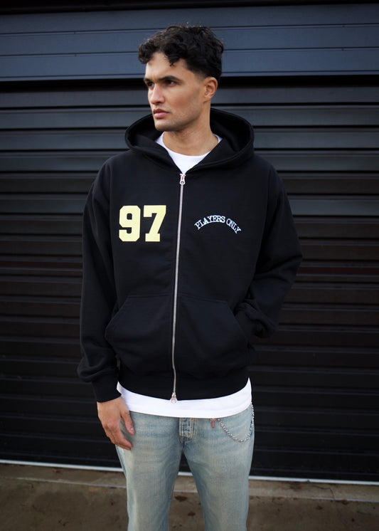 BLACK JERSEY ZIP HOODIE