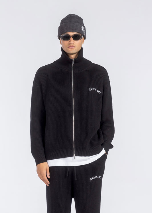 BLACK PLAYERS EMBROIDERED KNIT ZIP JACKET