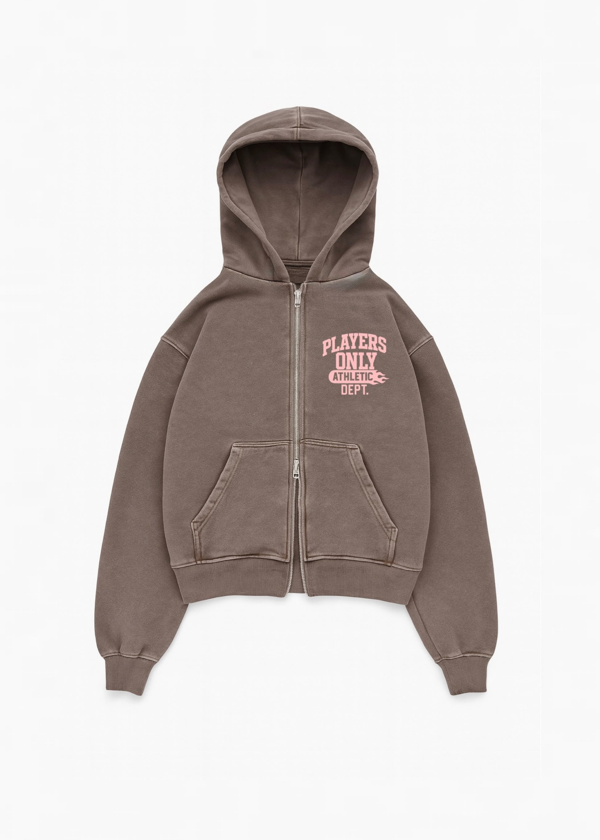 WASHED BROWN ATHLETIC DEPT ZIP HOODIE